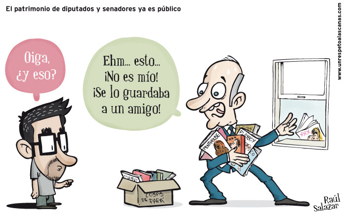 Pues sí, senadores y diputados, espero que hayan tenido tiempo de esconder dentro del colchón aquellos fajos de billetes y echar a la chimenea todo lo comprometedor. La transparencia ha llegado al Congreso y al Senado, y con ello proliferará el cotilleo político, más propio de aquellos paparazzis que rebuscan entre la basura del portal de famosos de medio pelo en busca de envoltorios de magdalenas y condones usados. ¡Pasen! ¡Pasen y vean! [Senado al desnudo]