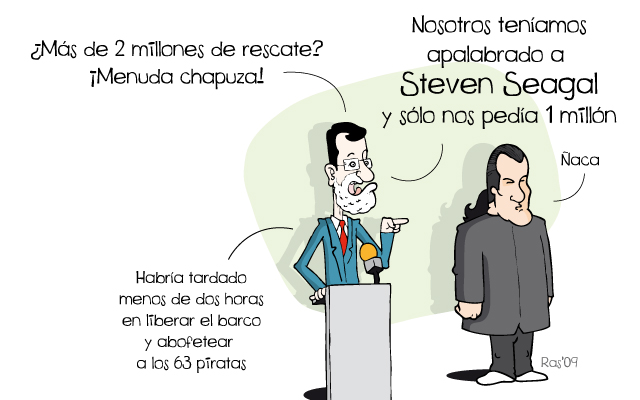 Etiquetado: Alakrana noviembre 20, 2009 España «como país» no pagó a los piratas Compártelo: Compartir en X (Se abre en una ventana nueva) X Comparte en Facebook (Se abre en una ventana nueva) Facebook Compartir en Menéame2 (Se abre en una ventana nueva) Menéame2 noviembre 18, 2009 Rajoy pide cuentas sobre el Alakrana Compártelo: Compartir en X (Se abre en una ventana nueva) X Comparte en Facebook (Se abre en una ventana nueva) Facebook Compartir en Menéame2 (Se abre en una ventana nueva) Menéame2