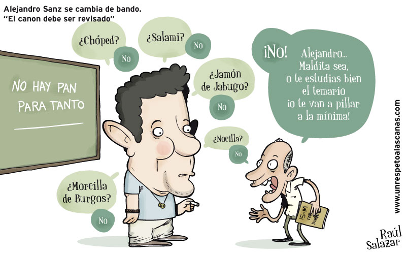 Leído su tweet podemos comprobar dos cosas. La primera que, a pesar de dedicarse a escribir canciones, sigue sin conocer la existencia de las tildes. Y segundo, el palpable «chaqueterismo» de sus declaraciones, agarrándose a un tren en marcha con matrícula 15-M, haciendo una declaraciones tardías, pues si piensa que «el canon debe ser revisado sin duda», no es necesario esperar a que desmantelen la SGAE y saquen a relucir toda la mierda. ¿O acaso, si no hubiera saltado este escándalo, nuestro rollizo amigo habría decidido, contra todo pronóstico, posicionarse en favor de una reforma sobre el canon digital?… No amigo no…