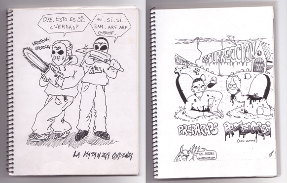 Hace ya diez años, cuando aún no tenía tantas canas, pasaba las horas de las somnolientas clases del colegio dibujando en cualquier trozo de papel que encontrara sobre el pupitre (generalmente sobre las fotografías de santos del libro de religión), y aprovechando esa incansable costumbre, junto a mi compañero Pepe Soler, comenzamos a retratar a cada uno de nuestros compañeros en curiosas historietas en las que todos acababan, uno a uno, muertos a manos de nuestras propias caricaturas (ahí estaba la gracia, no pongan esa cara). El resultado fue dos encuadernaciones de 15 páginas, una por curso (3º BUP y COU) y una dura competencia para la venta de orlas de aquellos dos años.