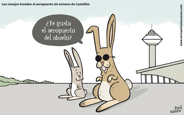 El aeropuerto de Castellón, inaugurado pero sin aviones, al que puedes ir a pasear según el ex-presidente de la Diputación de Castellón, Carlos Fabra, se ha llenado de conejos, royendo todo lo que encuentran a su paso (que no serán aviones) afectando la estructura del recinto aún por estrenar. [Noticia]
