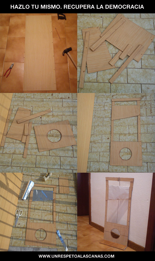 Para la ocasión iba a hacerme una camiseta, pero, aprovechando que el otro día desmembré un armario y todavía tengo algunas maderas en casa, he optado por ponerme un capítulo de «Bizarre Art Attack» y construir una guillotina.