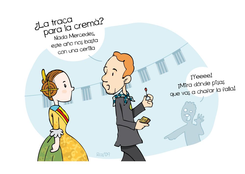 Las Fallas* (que tampoco es que sean mi perdición) me han mantenido un tanto desconectado del blog, y por ese motivo la siguiente viñeta va dedicada a dichas fiestas, concretamente a su último día, el de la medioambientalmente concienciada Cremà…