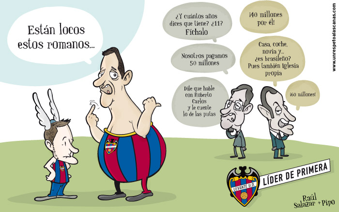 La idea de la viñeta, como podréis comprobar en la firma, surge de la colaboración con otra persona, mi compañero del colegio Felipe (Pipo en la firma), y el objeto del dibujo no es más que nuestro personal obsequio a Nico, un buen amigo y ferviente levantinista que a las duras y a las maduras siempre está ocupando su asiento en el Nou Estadi.