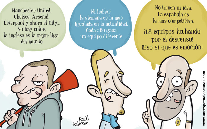 Nótese que no he querido hacer alusión a ningún jugador de fútbol en concreto, y no es porque en este caso la cosa vaya con los clubes y no con los deportistas, sino que me daba mucha pereza hacerle una caricatura a Cristiano Ronaldo.