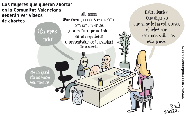Pero estas dos anécdotas no fueron las únicas lecciones impartidas por el «kiko». Una tarde nos llevó al salón de actos para proyectarnos una película. El vídeo era un documental casposo sobre el aborto. Por supuesto era una película anti-abortista. Tan sólo recuerdo el final. El gran final. Era un primer plano de una vagina abierta. Poco a poco, de él iban saliendo trozos de feto, placenta y sangre. El último trozo era visiblemente la cabeza del embrión. Tras esto una compañera vomitó en la primera fila, y volvimos al aula.