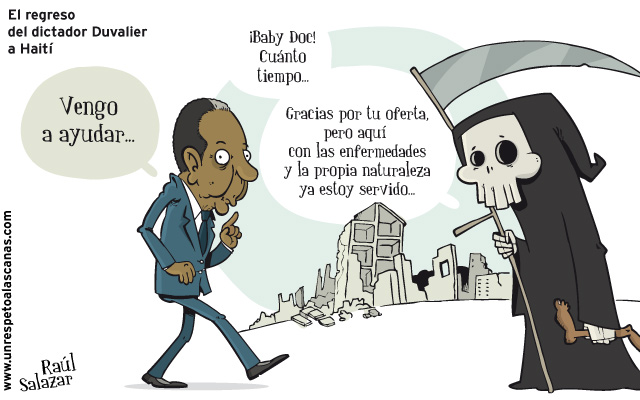 El ex-dictador de Haití, Jean Claude «Baby Doc» Duvalier, hijo del también ex-dictador del mismo país, François «Papa Doc» Duvalier, ha vuelto a su país natal 25 años después, y por lo que parece, con intención de presentarse a las próximas elecciones. Con las manos manchadas de sangre y un currículum repleto de corrupción, represión, abusos, terror y decenas de miles de asesinatos de haitinos a sus espaldas… «Baby Doc» viene a ayudar.