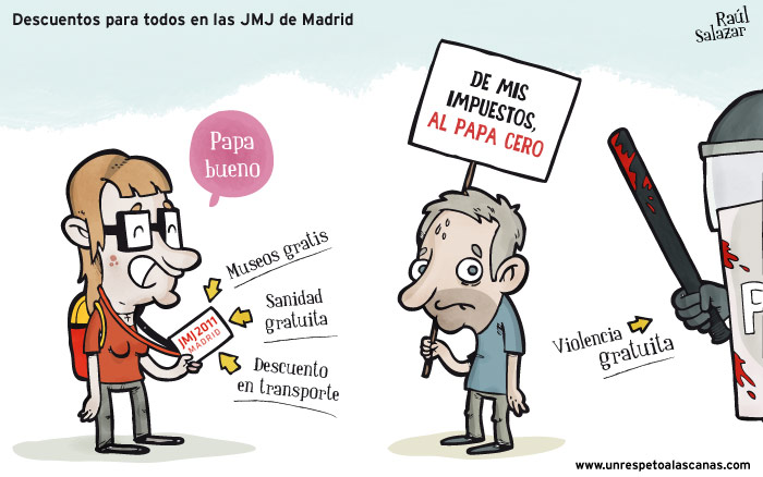 El peregrino de las Jornadas Mundiales de la Juventud está gozando en Madrid de unas vacaciones de ensueño, casi pagadas. Abran paso a los admiradores del Papa, que rosario en mano se acercarán a su Santidad para adorarle y, quién sabe, tal vez, ser el elegido y acompañarle a su camerino cuando termine la función…