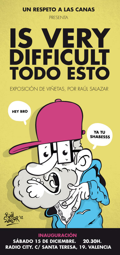 Para los que aún no se han enterado, el próximo sábado 15 de diciembre, o sea, de aquí a ná, inauguro la exposición IS VERY DIFFICULT TODO ESTO, consistente en un repaso a algunas viñetas de Un respeto a las canas que podrían resumir perfectamente lo que ha sido este 2012.