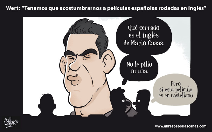 ¿Qué opinarán los actores españoles de todo esto? ¿Es acaso una nueva provocación de Wert hacia el gremio de actores despúes de la última gala de los Goya? ¿Acaso está abriendo las puertas del cine español a actores extranjeros? ¿Más Naomis Watts y menos Candelas Peña? Porque sinceramente, y con todo el respeto, me cuesta imaginarme a Mario Casas o Jorge Sanz interpretando en inglés, cuando ni siquiera se les entiende hablando en castellano.